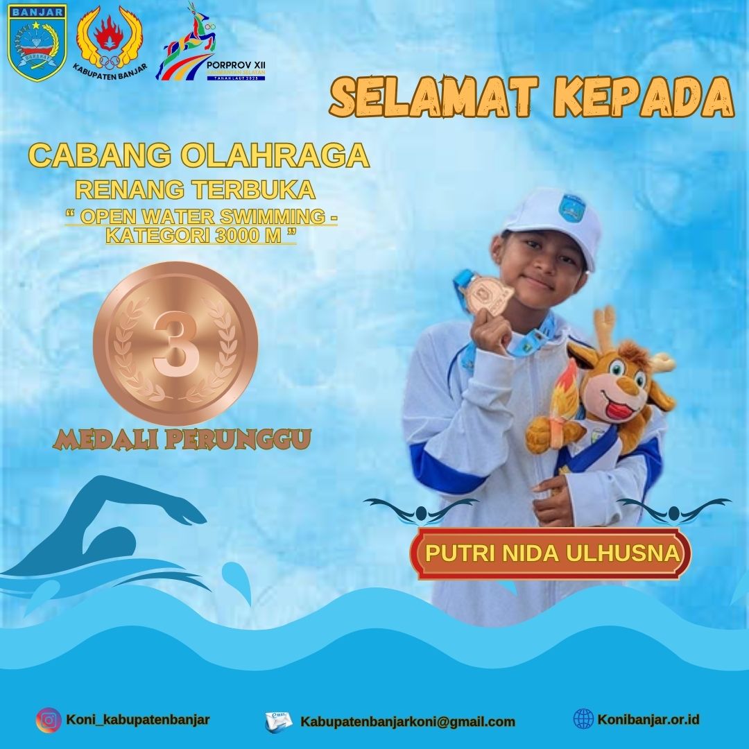 tim renang Kabupaten Banjar Porprov XII Kalsel di Tala menambah medali perunggu di cabor renang terbuka nomor 3.000 meter putri
